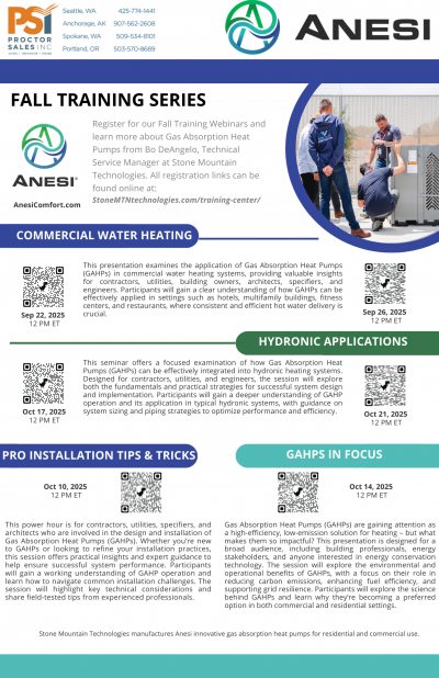 Register for our Fall Training Webinars and learn more about Gas Absorption Heat Pumps from Bo DeAngelo, Technical Service Manager at Stone Mountain Technologies.